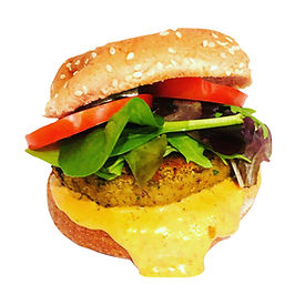 Can you believe this is a 100% vegan burger? It's so colorful, it looks like one of those squeaky hamburger toys we had as kids.